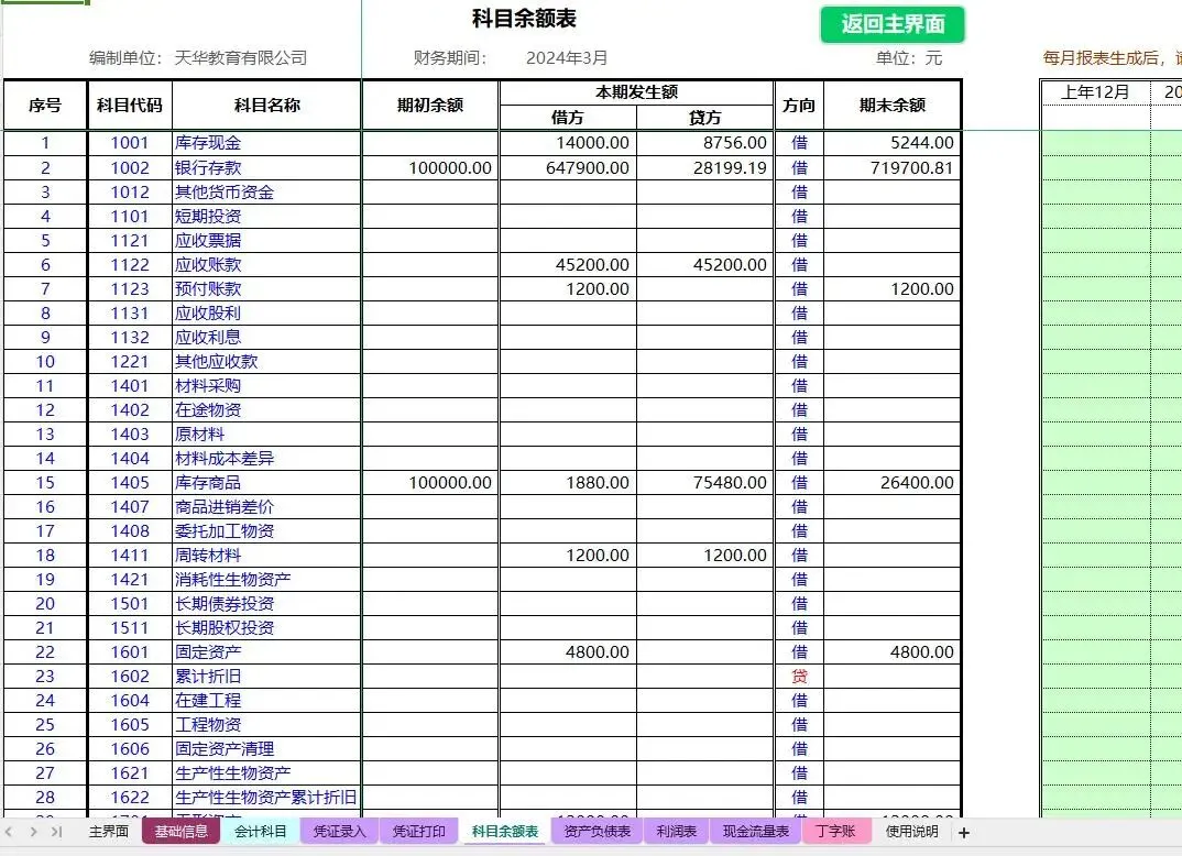 科目余额表