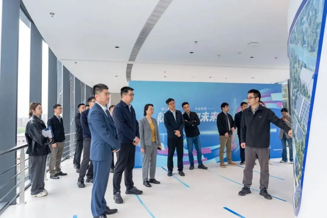 在实地走访环节,考察组一行实地参观了电竞演艺中心,并前往科学之眼俯瞰园区全貌,详细了解甬江软件园的规划布局、建设进展及产业招商情况。