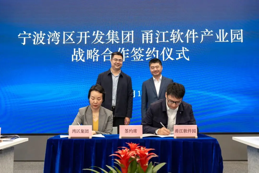 座谈交流中,三方结合自身资源禀赋与核心优势,围绕载体平台共建、产业招商联动、科技创新赋能、资源要素共享等方面进行了富有成效的交流探讨。同时,马春梅董事长代表宁波湾区集团与甬江软件产业园签署了《关于共建“数字制造产业协同创新示范区”战略合作备忘录》,未来将通过“软件+硬件+数据”的深度融合,围绕产业协同、载体联动、资本合作、生态共建四大目标开展深度合作,共同助力鄞州数字制造提质升级。