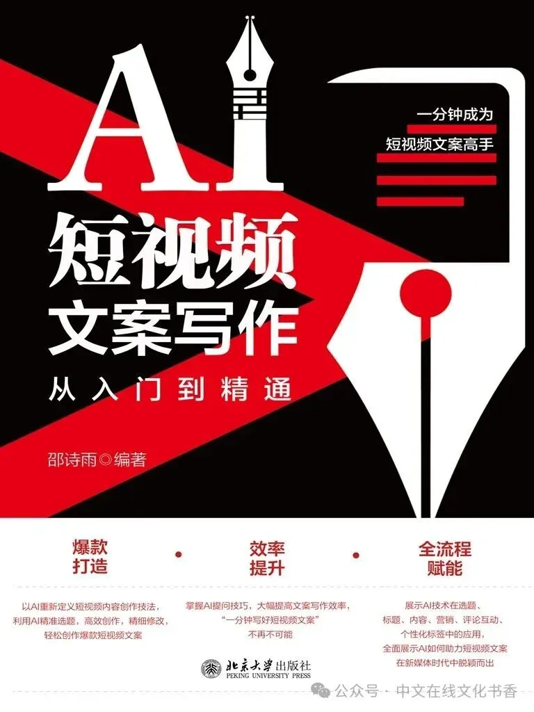本书内容丰富,有很强的实用性和操作性,可以帮助读者理解和掌握AI工具的使用,并学习如何根据不同受众群体的文化背景,创作出具有吸引力和影响力的短视频文案。