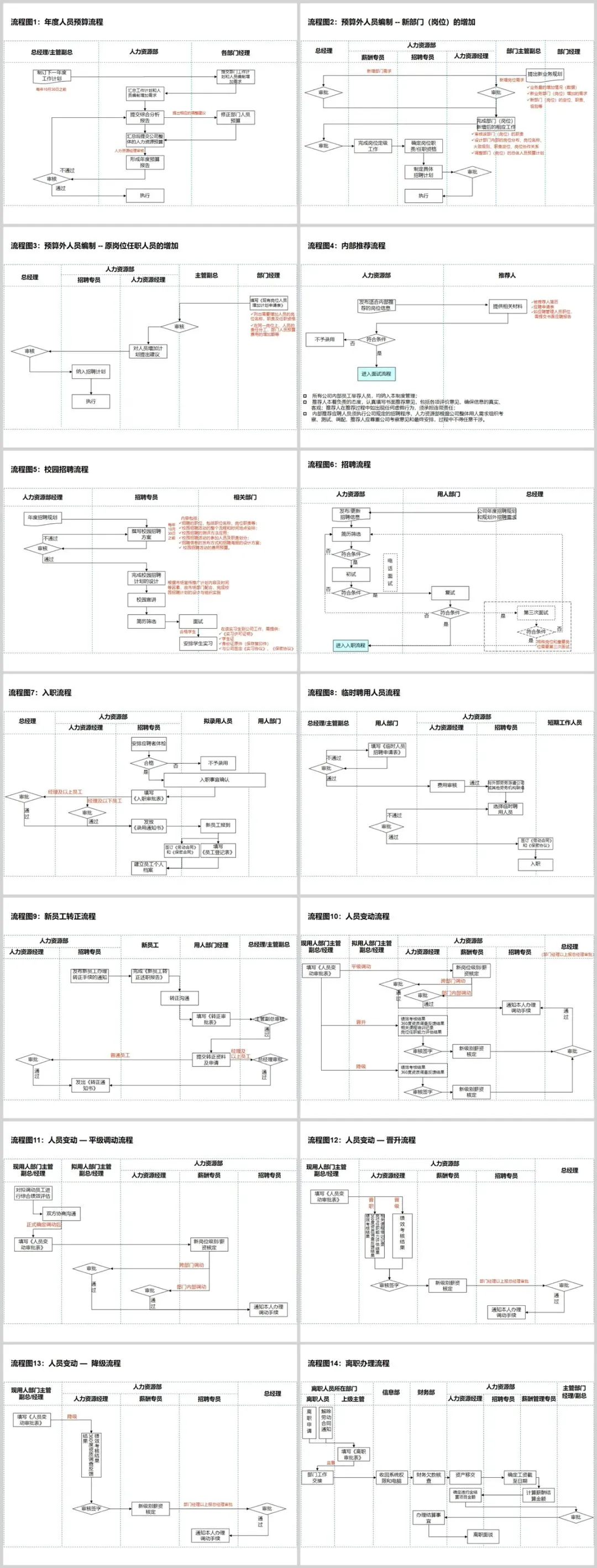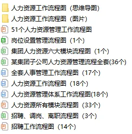 本套资料包含人力资源六大模块的工作流程图,总共12个文件,200+个流程图,非常全面。