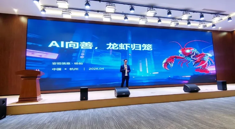 杭州安恒信息技术股份有限公司高级副总裁杨勃以“AI向善、龙虾归笼”为主题分享 AI Agent安全趋势,探讨AI安全治理与风险防控。