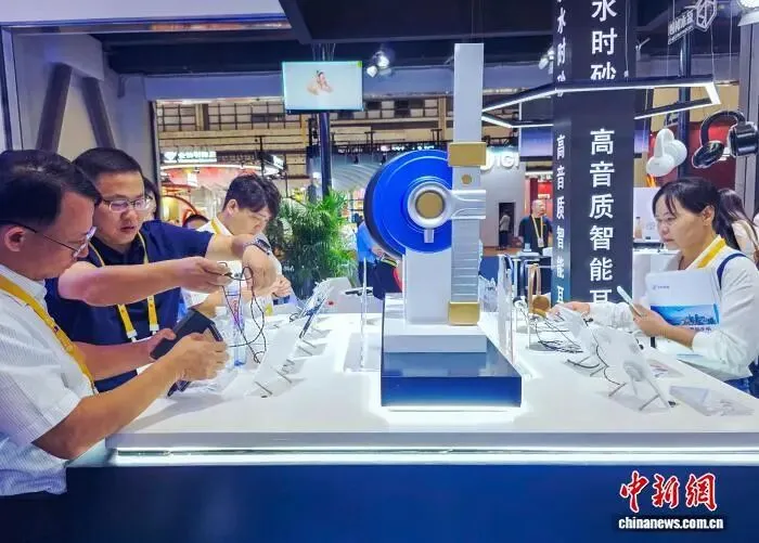 深圳市冠旭电子股份有限公司的高级销售工程师谢鑫在消博会展台演示了AI耳机的翻译功能:对方说英语,耳机实时翻译成中文传入耳中;线上会议结束后,系统自动生成会议纪要;通话时说了重要内容来不及记录,语音转写功能会自动生成文档。“在一些商务场景中,耳机就如同你的私人助理。”谢鑫说。