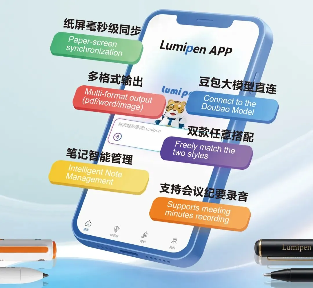 作为品牌王牌产品,Lumipen AI手写笔突破传统书写边界,搭载自研OCR识别技术,实现落笔实时同步;支持手写笔记一键转档、AI检索,同时兼顾长效续航与离线存储,学习、办公、创作全场景无缝适配。此次于消博会重磅推出2.0全新版本,功能全面升级,带来更智能、更流畅的书写新体验。