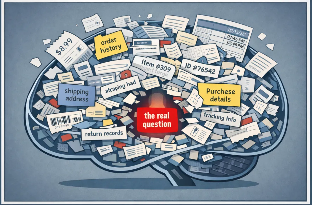 你想想看,这就好比你去问一个客服,我的快递到哪了,然后这个客服先把你的档案翻了个底朝天,把你三年买过的所有东西都记在脑子里,再来回答你。