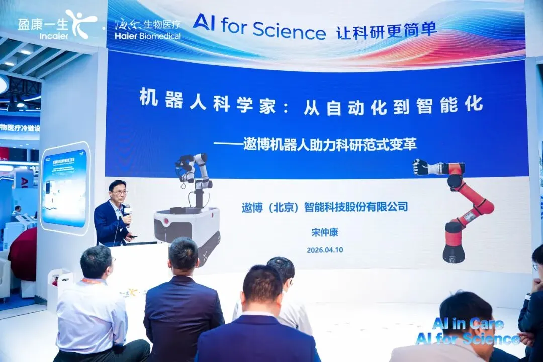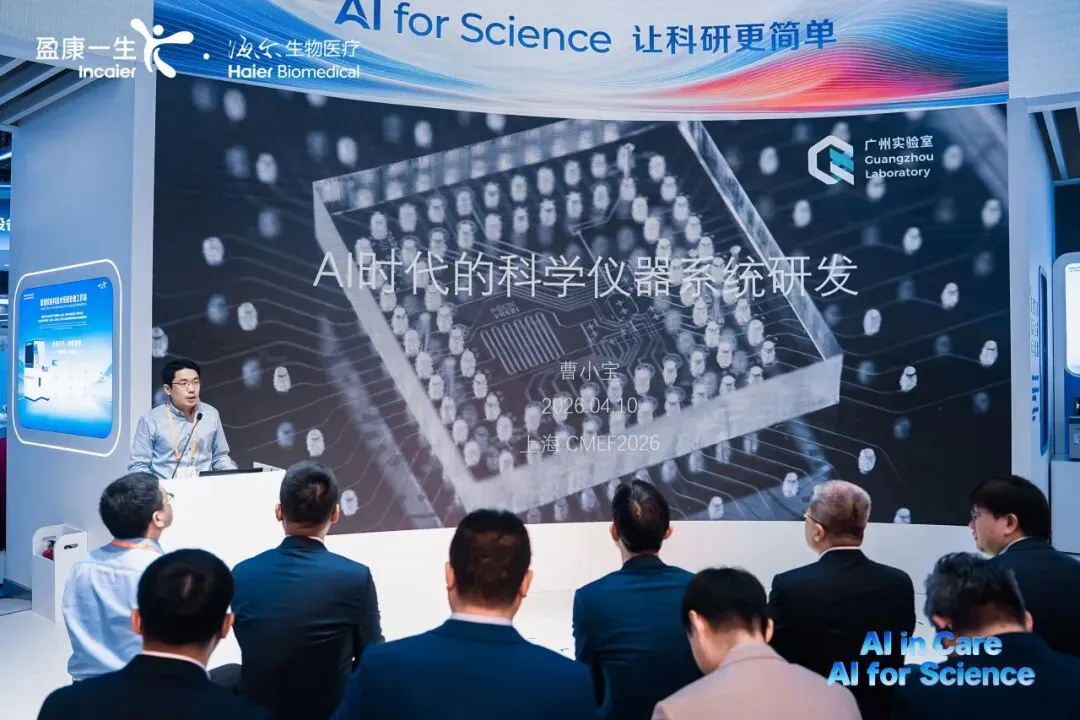海尔生物医疗自主研发的“AI智眸”自学习视觉识别智能体在CMEF上首次亮相,它以视觉模型为基础,在关键操作中实现“看见即判定,判定即行动”,构建了“感知-决策-执行”闭环,实现了让科研更简单。