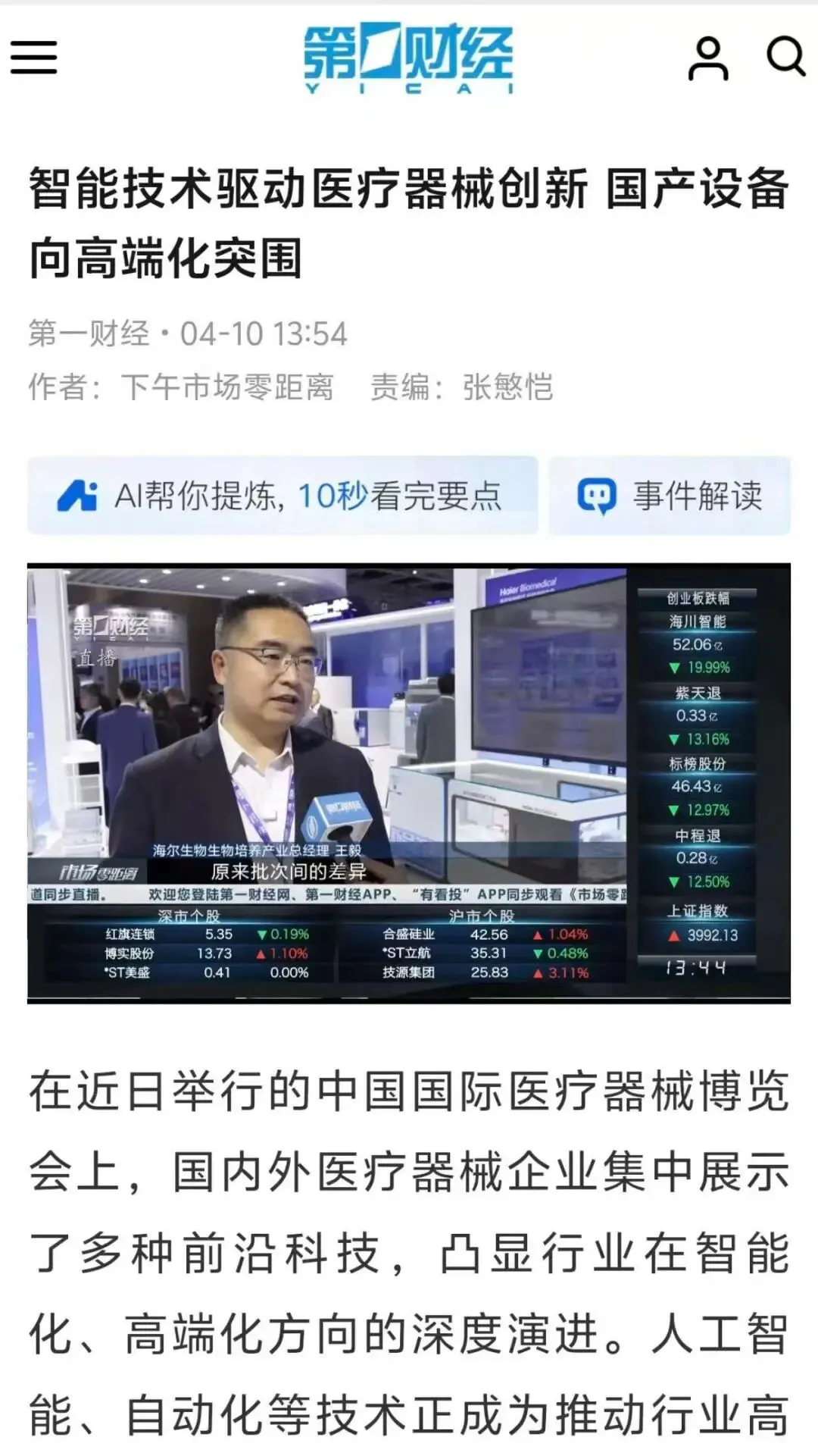 •海尔生物全球AI+创新平台负责人董培元发布战略