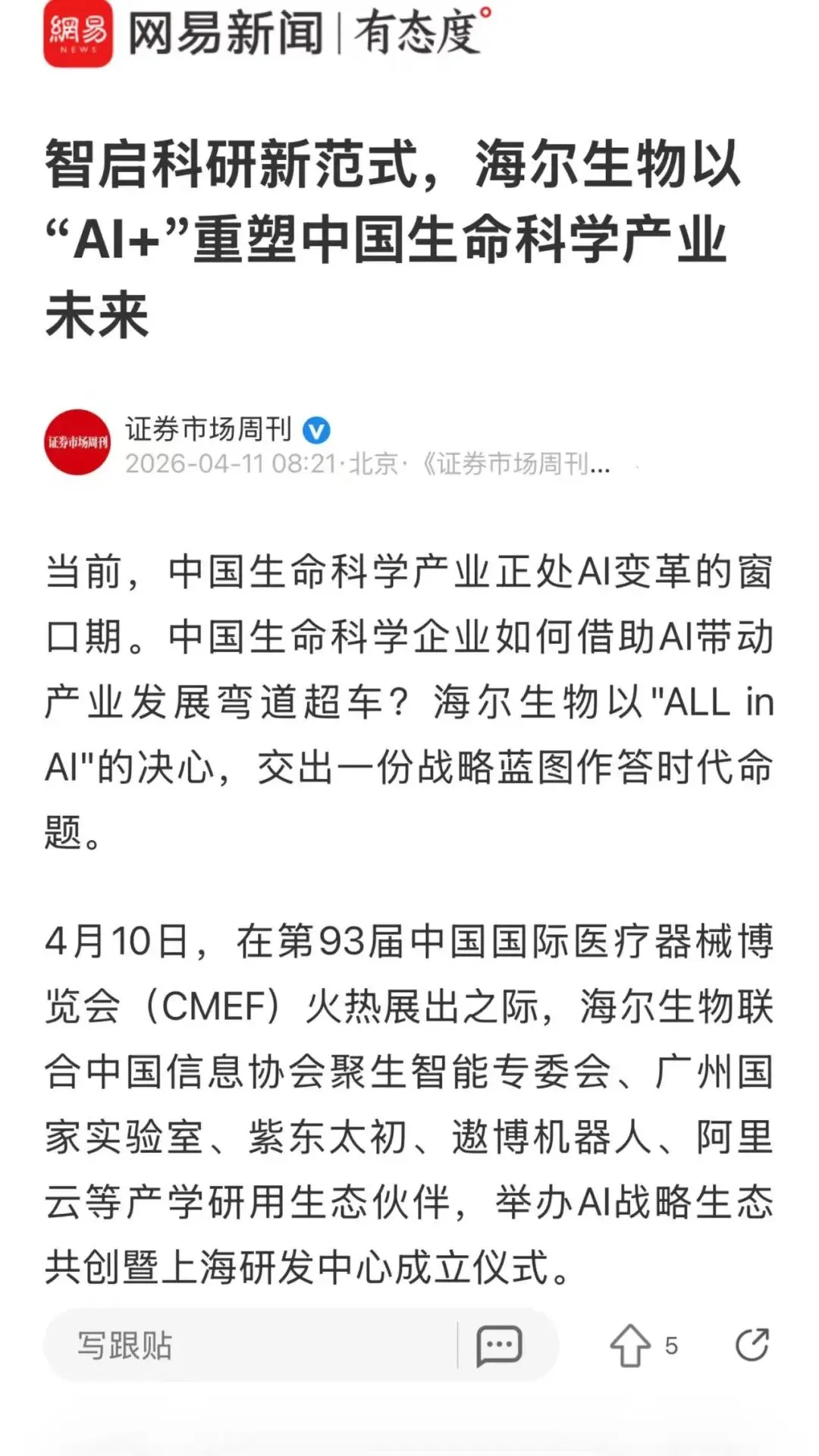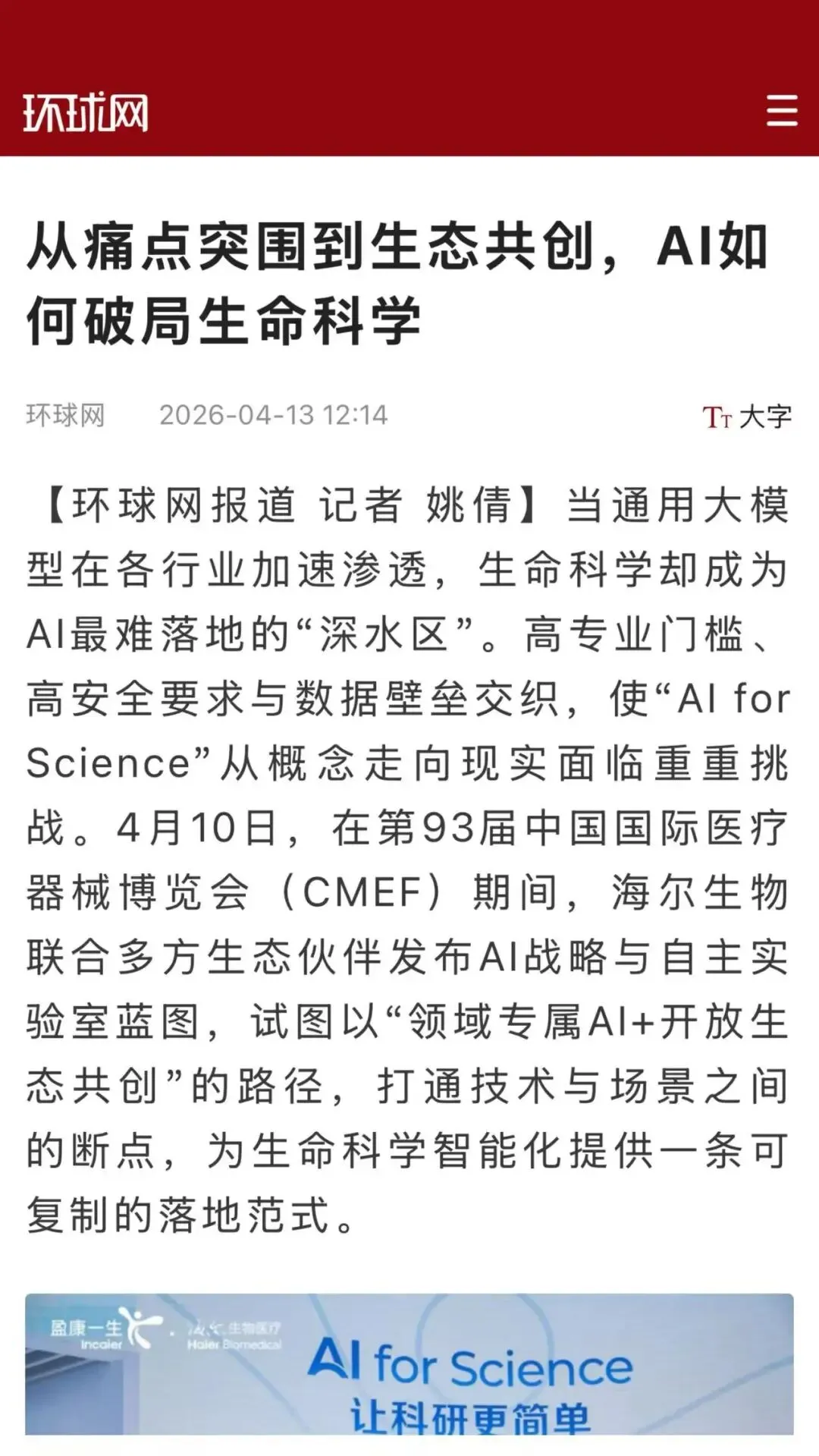海尔生物AI战略生态共创发布