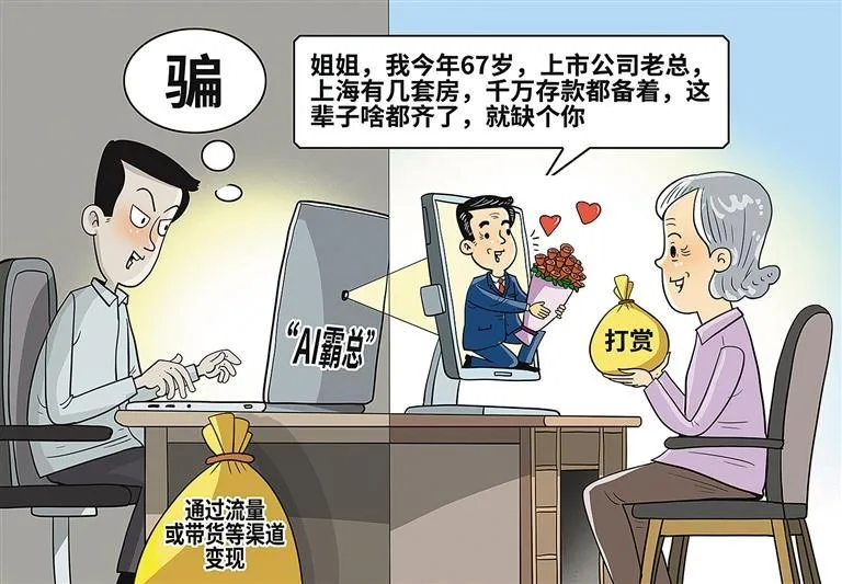 短视频平台上,身着正装、开着豪车、戴着金表的“儒雅霸总”,张口“姐姐”、闭口“想你”,嘘寒问暖甚至下跪求婚……这些“霸总”其实是AI生成的,但不少老年粉丝信以为真,不仅身心健康受到影响,还存在被诈骗的风险。然而,仅靠平台一行“内容由AI生成”的小字标注,远不足以阻挡这一关于老年人的围猎。对此,监管部门需持续开展“清朗”系列专项行动,依法从严查处利用AI生成虚假内容诱骗用户的违规账号;平台应升级AI识别算法,主动拦截仿冒形象和诱导话术,并强制推行显著、不可隐藏的AI标识;家庭中子女需增加陪伴,耐心帮助长辈提升数字素养和防骗意识。此外,社区可开展针对性普法宣传,组织线下活动以真实社交消解老年人的情感孤岛。(时 锋)