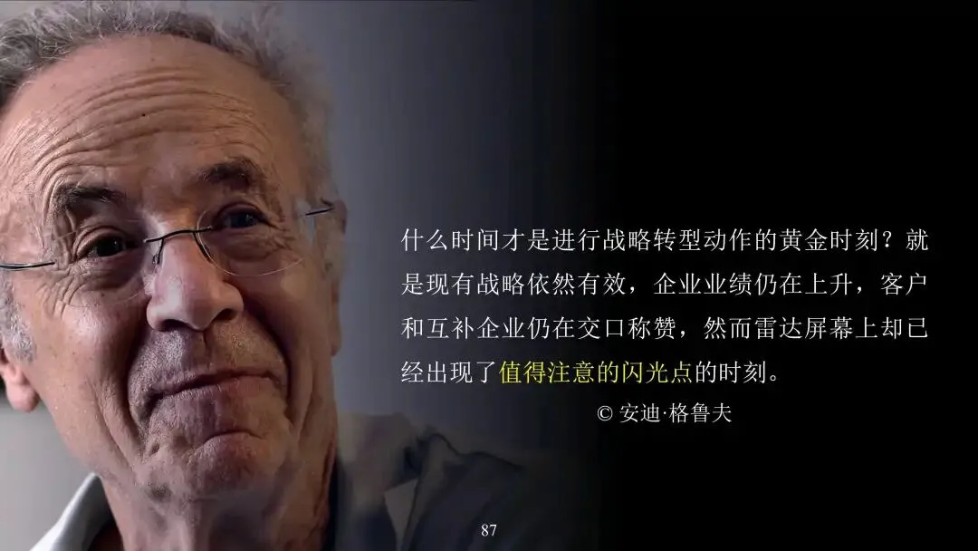 intel总裁格鲁夫每个月都会模拟一次被董事会辞退的场景,然后自己在想董事会解释,那些做的不好,那些做的目的是什么,就是这样的自我革新方式,带领因特尔从新辉煌了,这种自我否定和重建自我的职业曲线方式,我建议从业人员也去模拟,没准有一天你会感谢自己对自己的这种残忍的否定和模拟的。