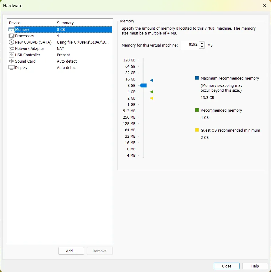 设为 8192 MB(8GB)。对于16GB的主机,这是最平衡的分配,既能保证Ubuntu流畅,又给Windows留了足够空间。