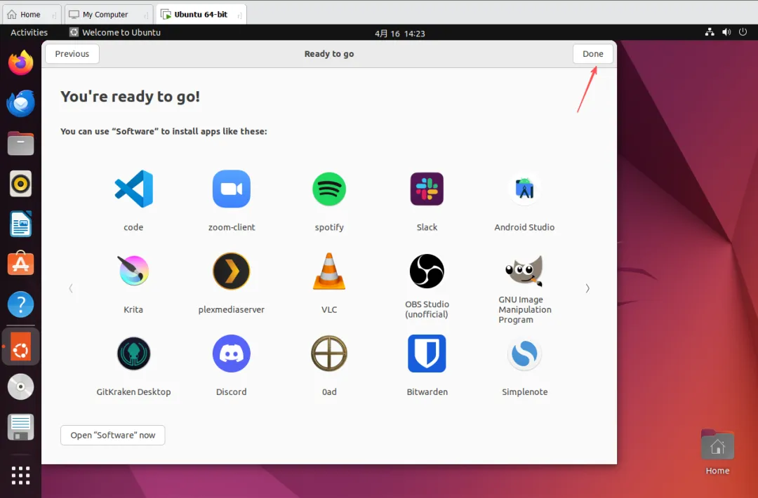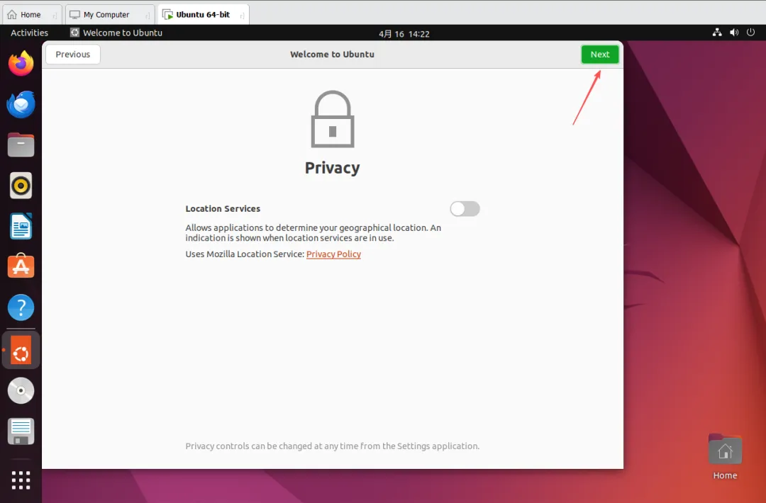 能正常进入Ubuntu桌面,就说明虚拟机搭建成功了。