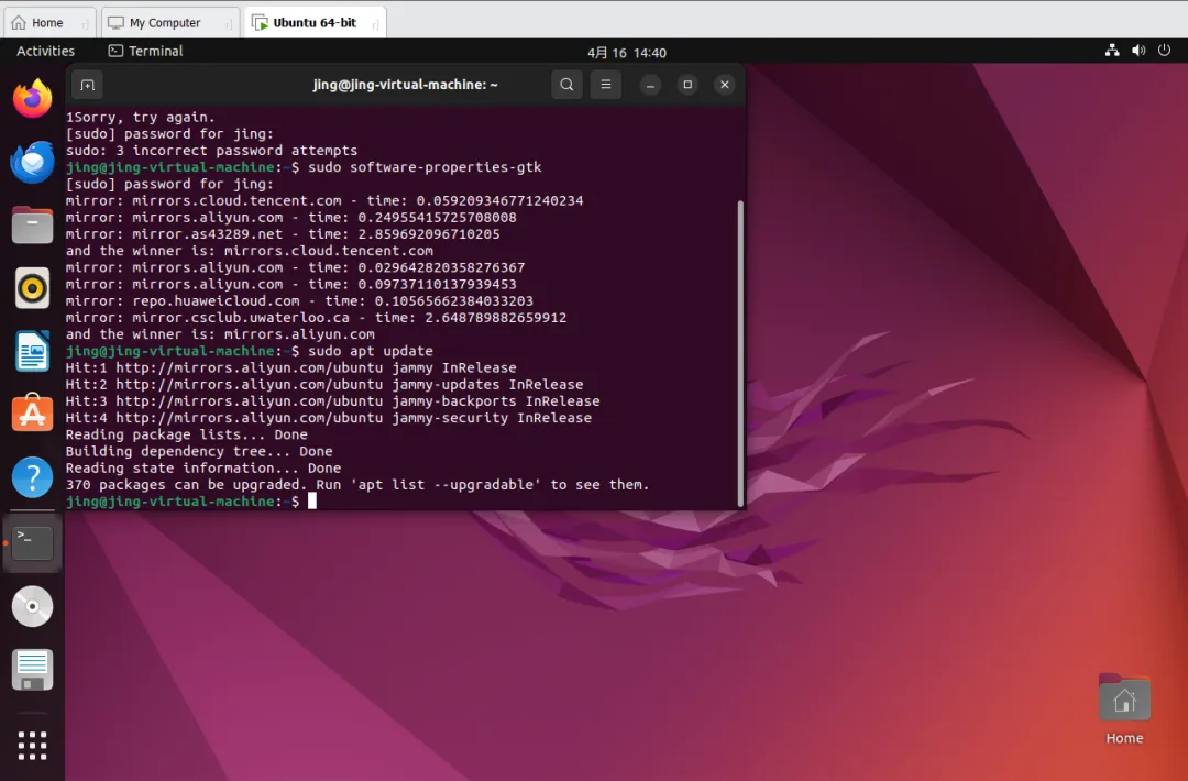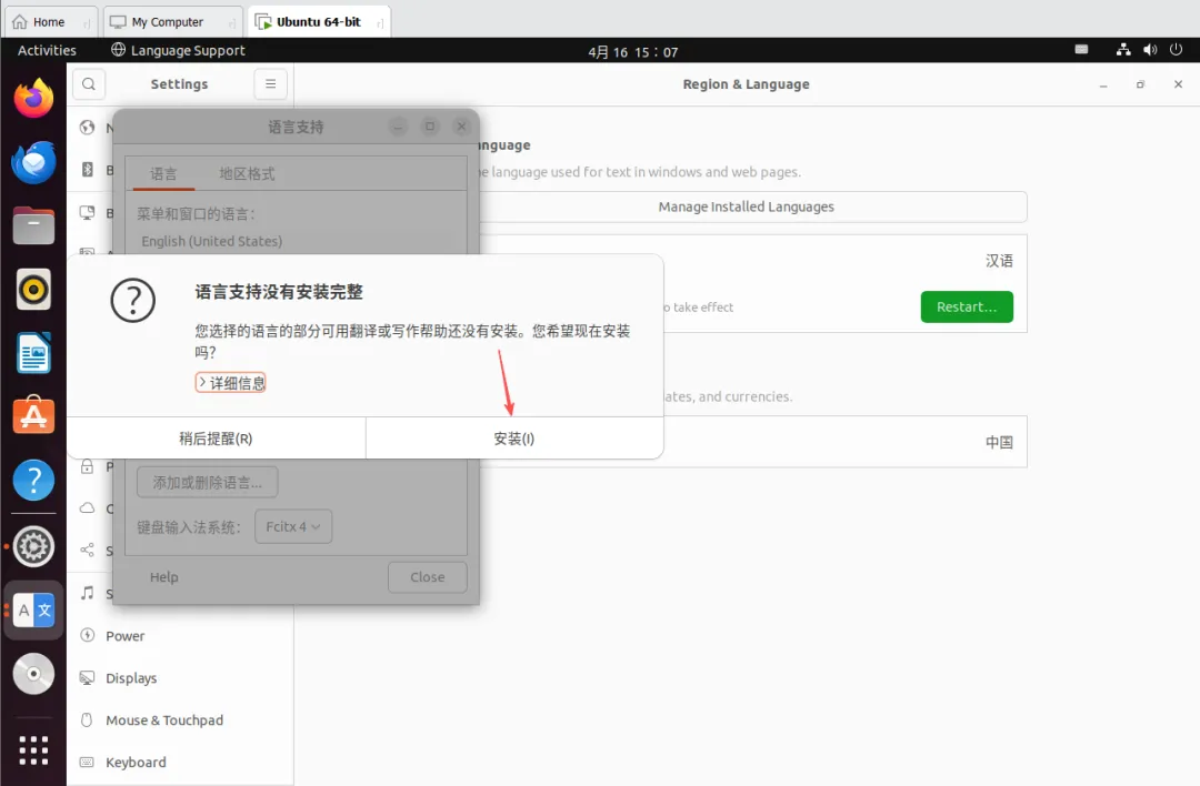 昨天成功安装了虚拟机软件,今天,我在虚拟机里把 Ubuntu 系统也搭建好了,并且把语言改成了中文。