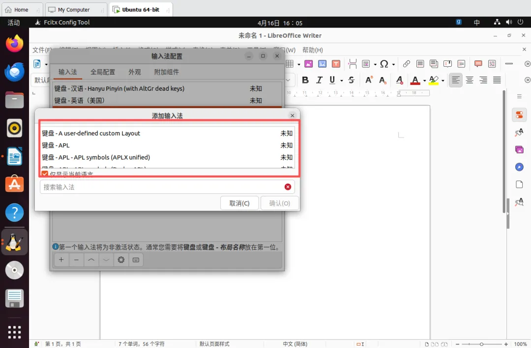 或者直接点击系统菜单的关机按钮选择重启。reboot - 添加拼音输入法