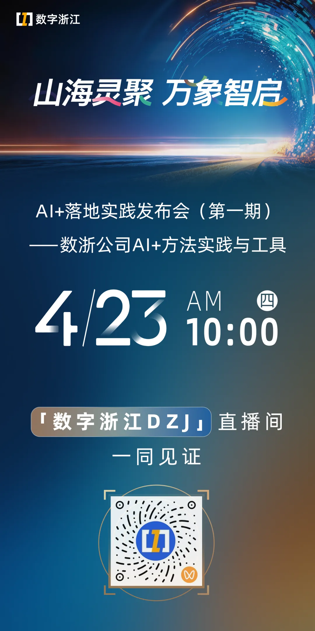 4月23日(周四)10点锁定「数字浙江DZJ」直播间一同见证AI+落地实践发布会