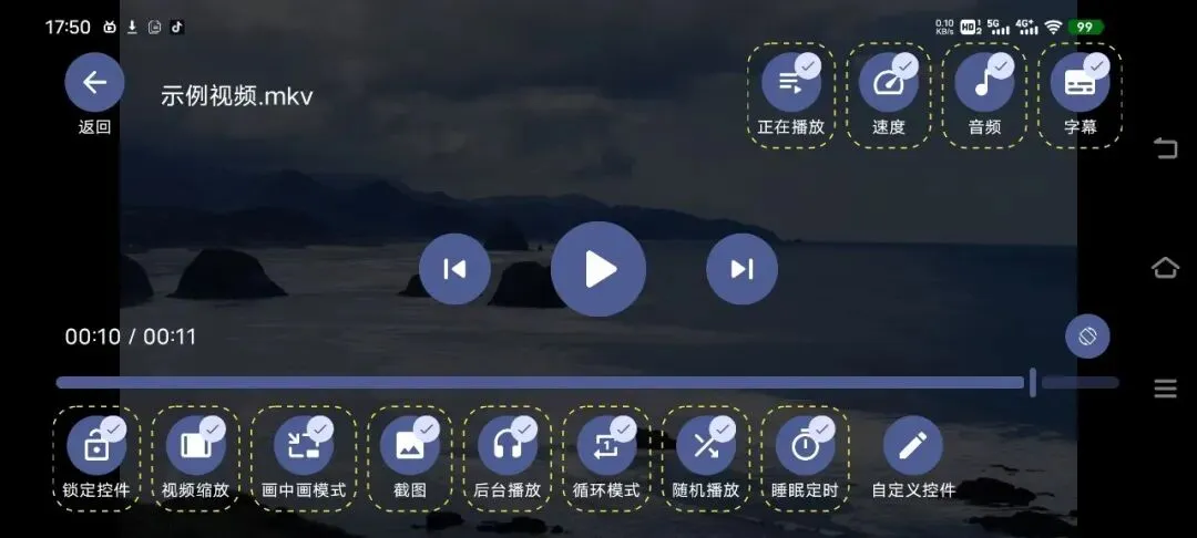 2、超强格式兼容:完美支持 MP4,MKV、AVI、MOV、FLV、WMV、RMVB 等几乎所有主流视频格式,无需转码直接播放。还有视频缩放拉伸,画中画模式,后台播放,睡眠定时,倍速播放,全格式字幕兼容,手动导入外部字幕、切换多字幕轨等多种功能。