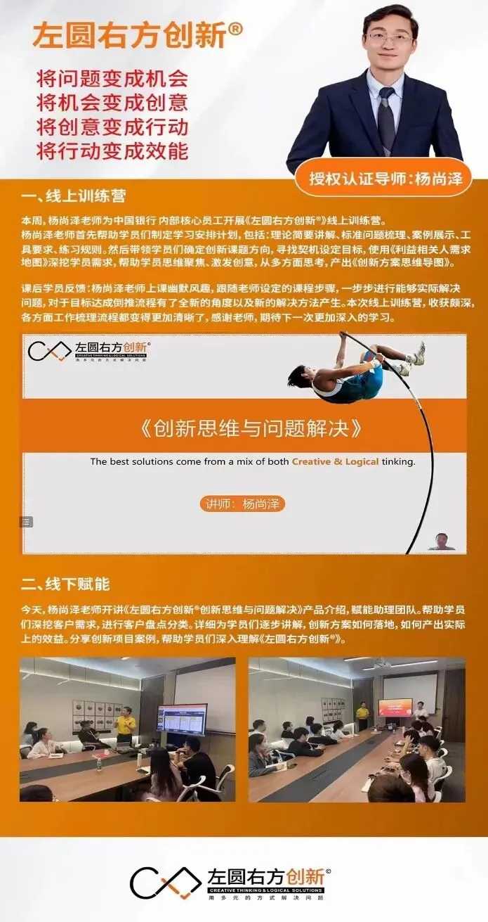 农业银行 《左圆右方®创新思维与问题解决》 | 平安集团 《左圆右方创新®创新人才培养项目》 |