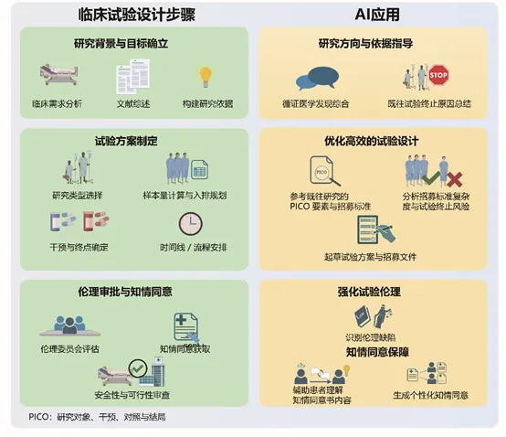 1.1.方案科学化与 PICO 自动提取。AI 可自动读取海量文献与历史试验,提取 PICO 要素(人群、干预、对照、结局),辅助构建科学假设,减少方案设计的主观性与漏洞。