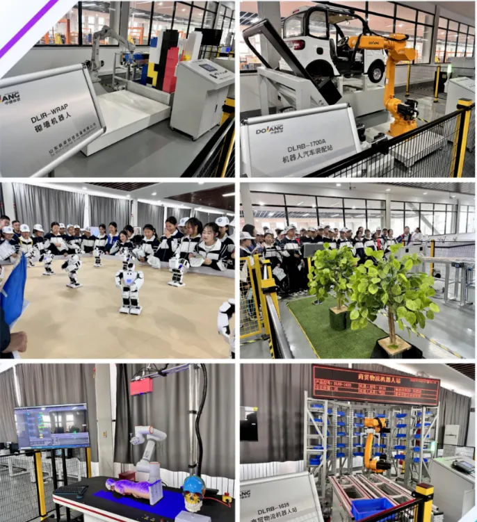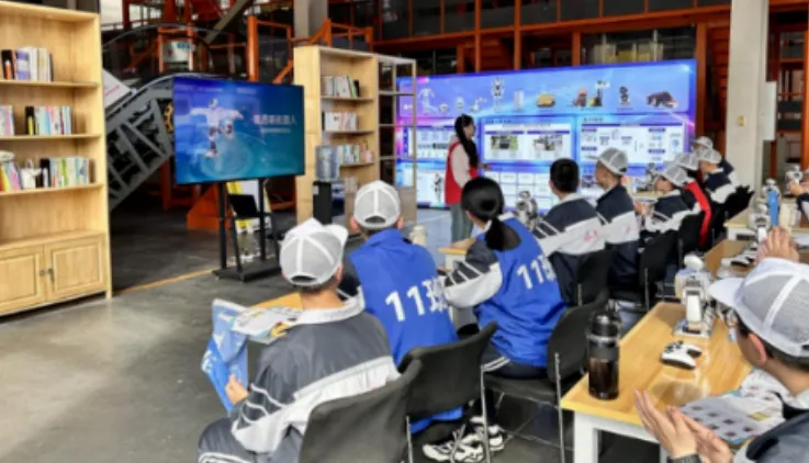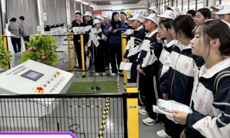 穿梭于时光隧道般的展区,工业机械臂在透明玻璃舱内划出0.01MM精度的优雅弧。学生参观各类应用机器人,包括工业生产线上的机械臂、餐厅服务机器人、教育陪伴机器人等。工作人员现场演示机器人的操作过程,窥见机器人改写人类文明进程的万千可能。