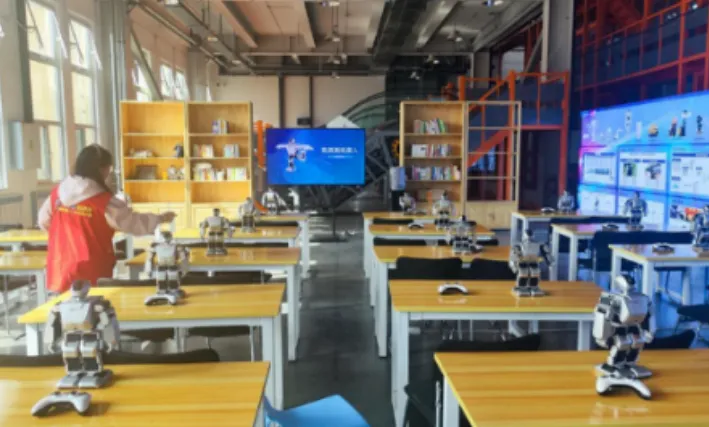 在研学导师的指导下,学习使用图形化编程软件为人形机器人编写程序,控制机器人完成行走、舞蹈、对话等任务。