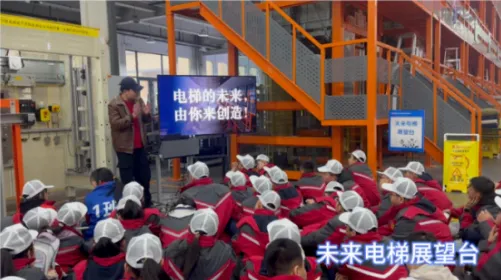 研学导师引导学生来到电梯展示区,通过电梯模型、模拟系统和案例分析,讲解电梯的发展历史、工作原理以及人工智能技术在电梯智能化升级中的应用,如智能调度、故障预警等。一起见证传统制造业的涅槃重生,理解科技的温度与责任。