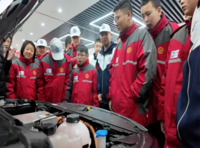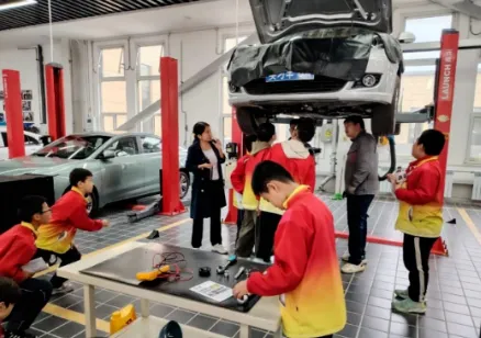学生来到汽车制造展示区,通过多媒体演示、汽车模型拆解和生产流程模拟,了解汽车从设计到生产的全过程,以及人工智能在汽车自动驾驶、智能座舱等方面应用。