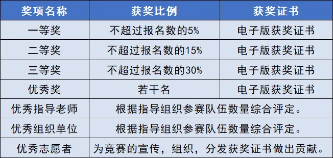 1.初赛根据初赛成绩排名,颁发一等奖、二等奖、三等奖和优秀奖若干名。