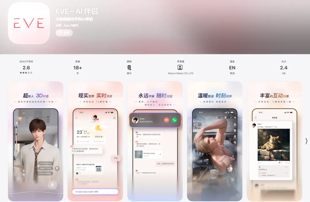 🔹被误解为AI乙游的主产品EVE,野心远不止于陪你谈情说爱