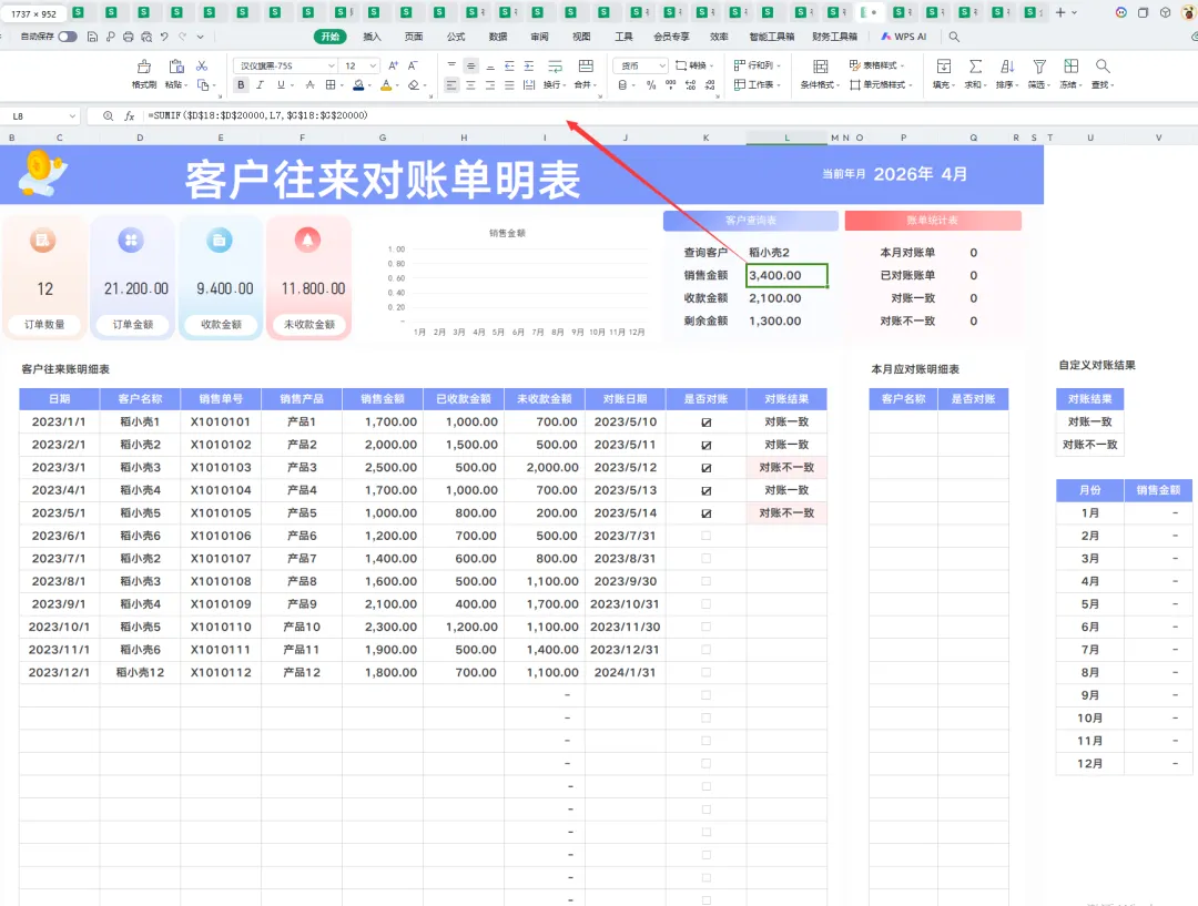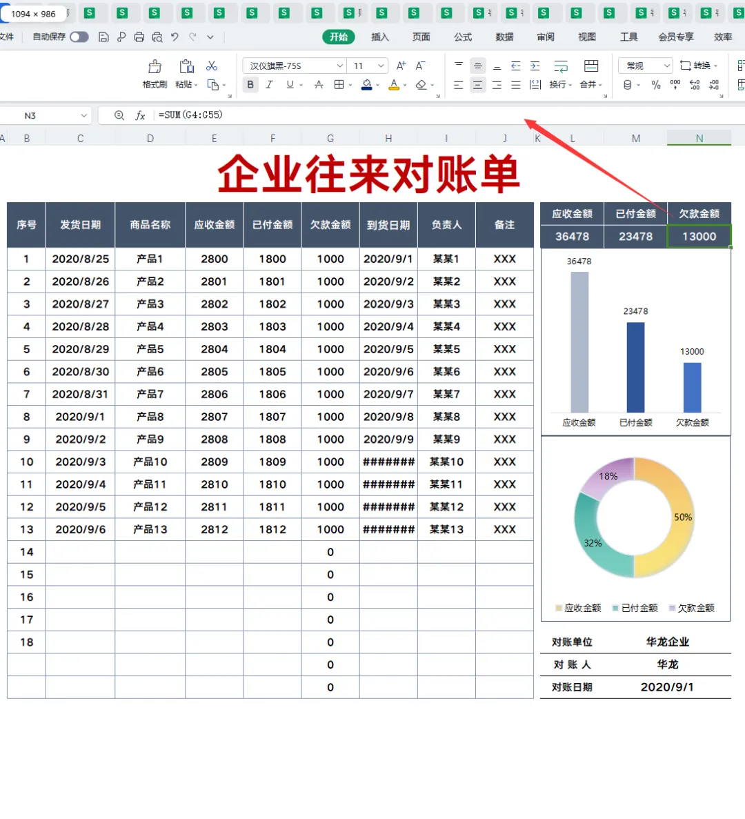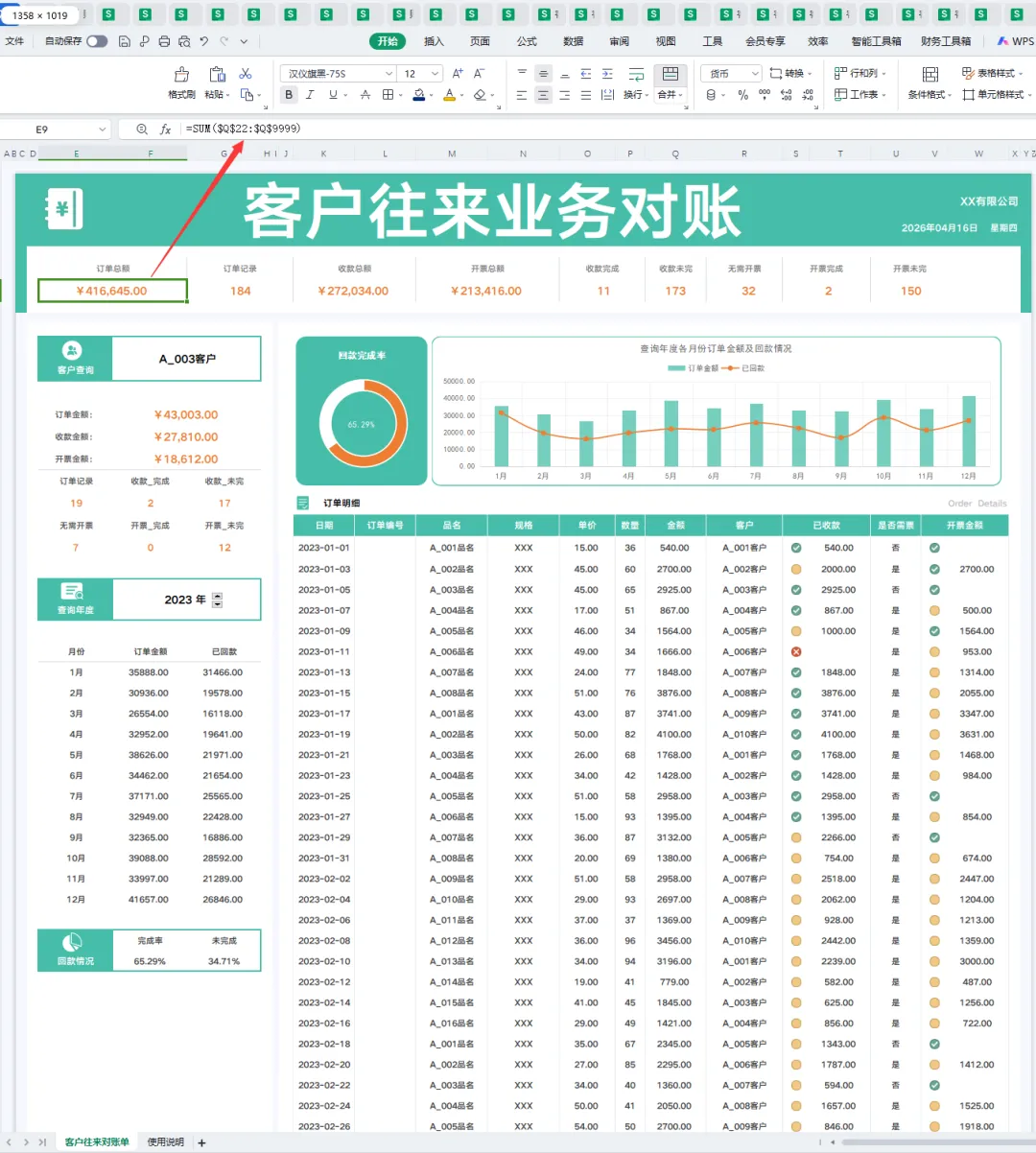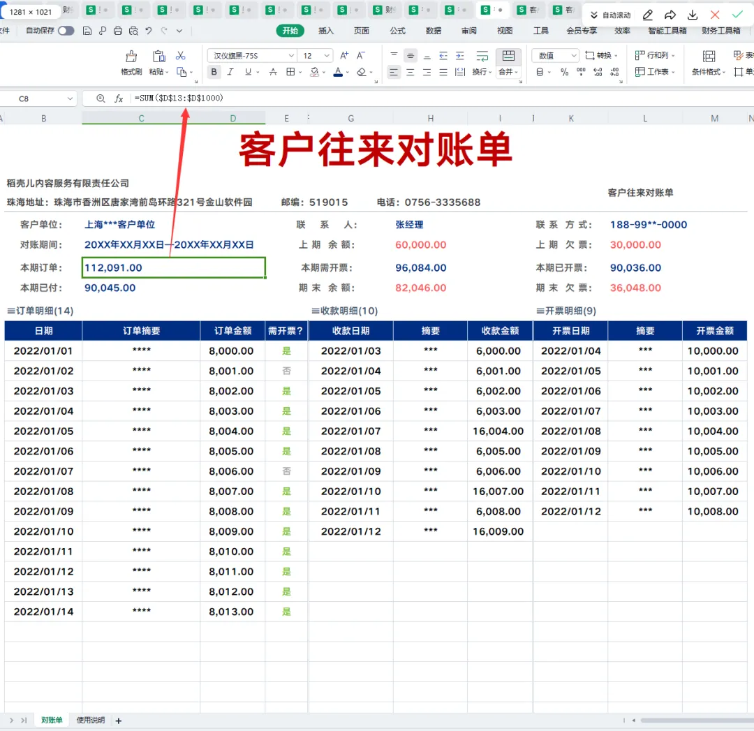 新版往来对账调节表模板出来啦!客户往来对账单Excel模板,有公式+图表,数据清晰,先收藏保存,随时可用!