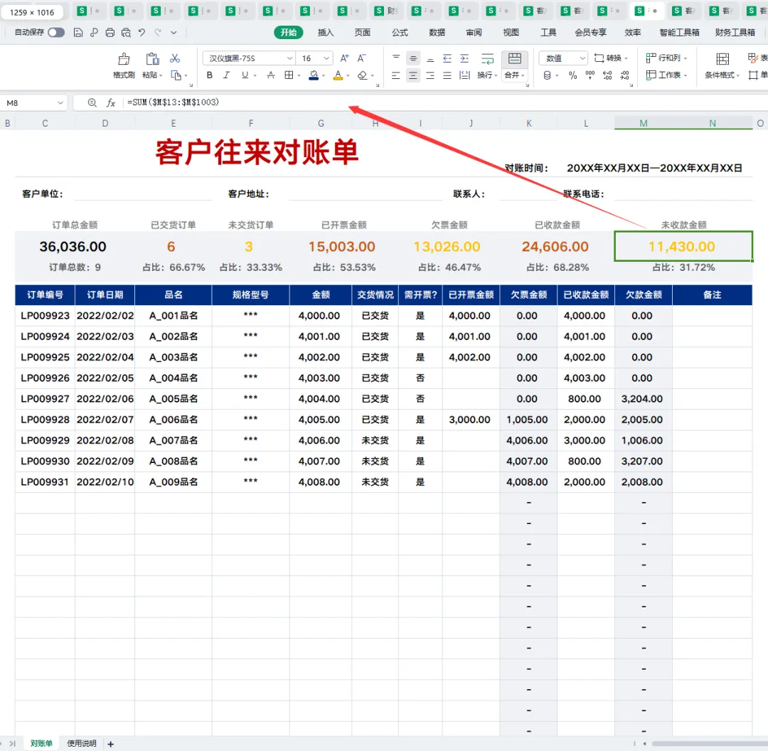 哎,到了对账的时间总的让人头大,客户说金额不对、供应商那边也说对不上账,总归就是数据不清晰,小编这边整理了份电子版的往来对账单,含自动核销公式+差异预警功能,能够清晰的看到每次货物的所有信息,单号、合同号、数量单价、金额等等,赶紧使用起来吧!
