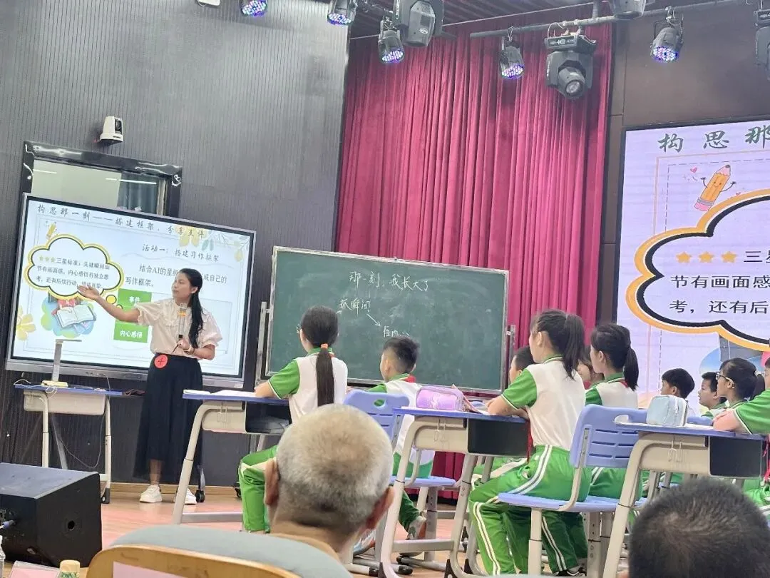 优异成绩的背后,离不开团队的智慧与力量。备赛期间,镇中心小学教育办公室组织骨干教师成立备赛团队,围绕新课标理念、人工智能与“教学评一致性”的课堂融合路径,开展多轮集体备课、试讲打磨和评课研讨。从教学情境的创设到评价任务的嵌入,从写作支架的搭建到AI技术的适切运用,团队成员反复推敲、精益求精,为曾老师提供了坚实的专业支持。