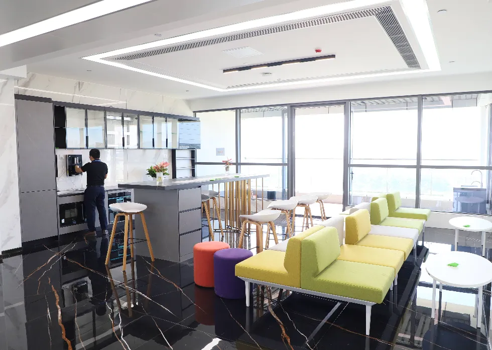智能化办公园区,园区内设有智慧食堂、咖啡厅、书吧、健身房、网球场、篮球场、羽毛球场等运动场地。