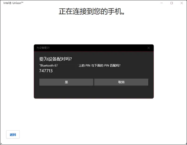 注意:若想实现互联手机端也需要下载对应app,有需要的小伙伴可以在本站下载Intel Unison安卓手机版 首次打开需要进行扫码或者文本代码配对(手机电脑可以不在同一局域网,不在局域网下也能连接,但蓝牙是必须的,注意允许配对)