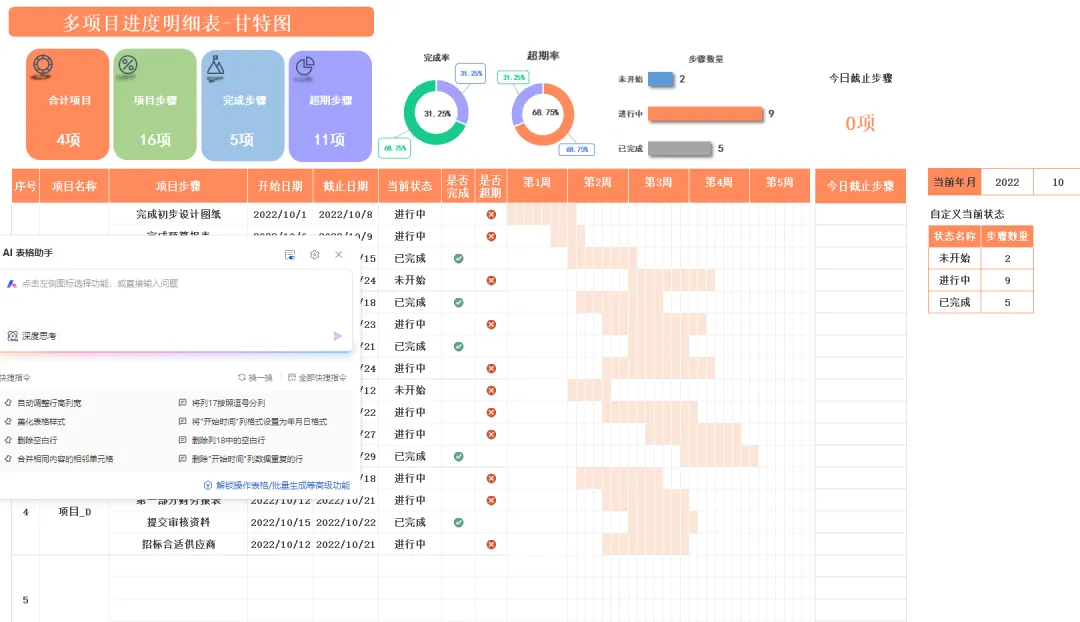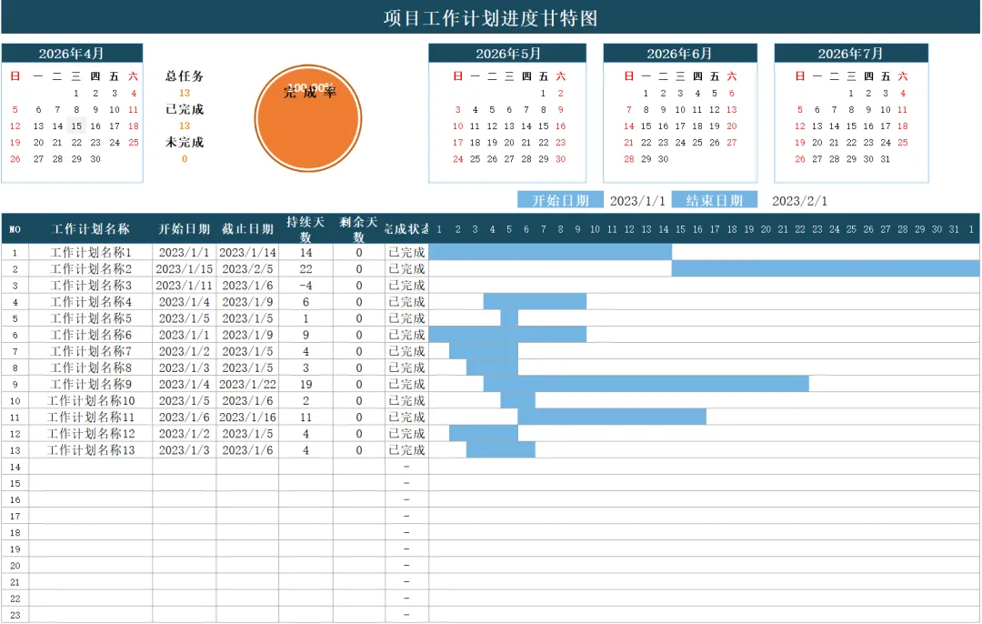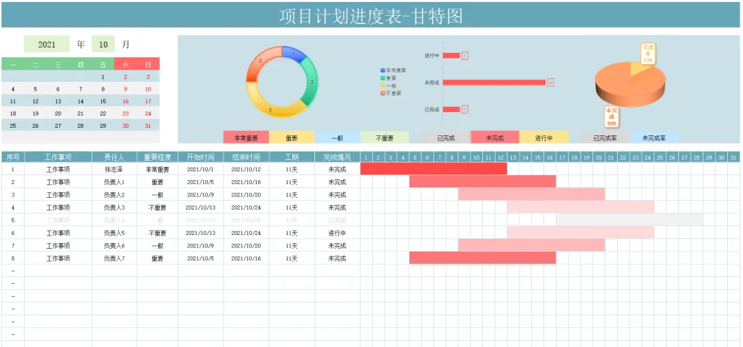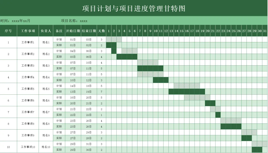 今天小编给大家带来10套项目进度甘特图表表模板,都是Excel格式的,而且有些是自带后台函数数据,会自动计算,有需要可以滑到文末下载!