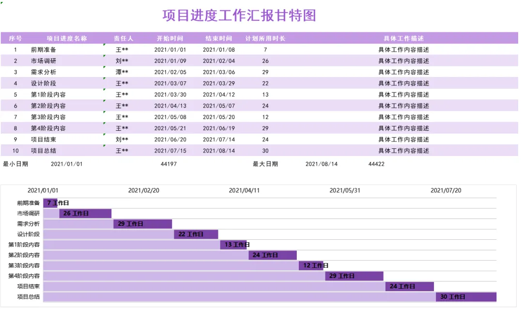 紫色简约项目进度工作汇报甘特图