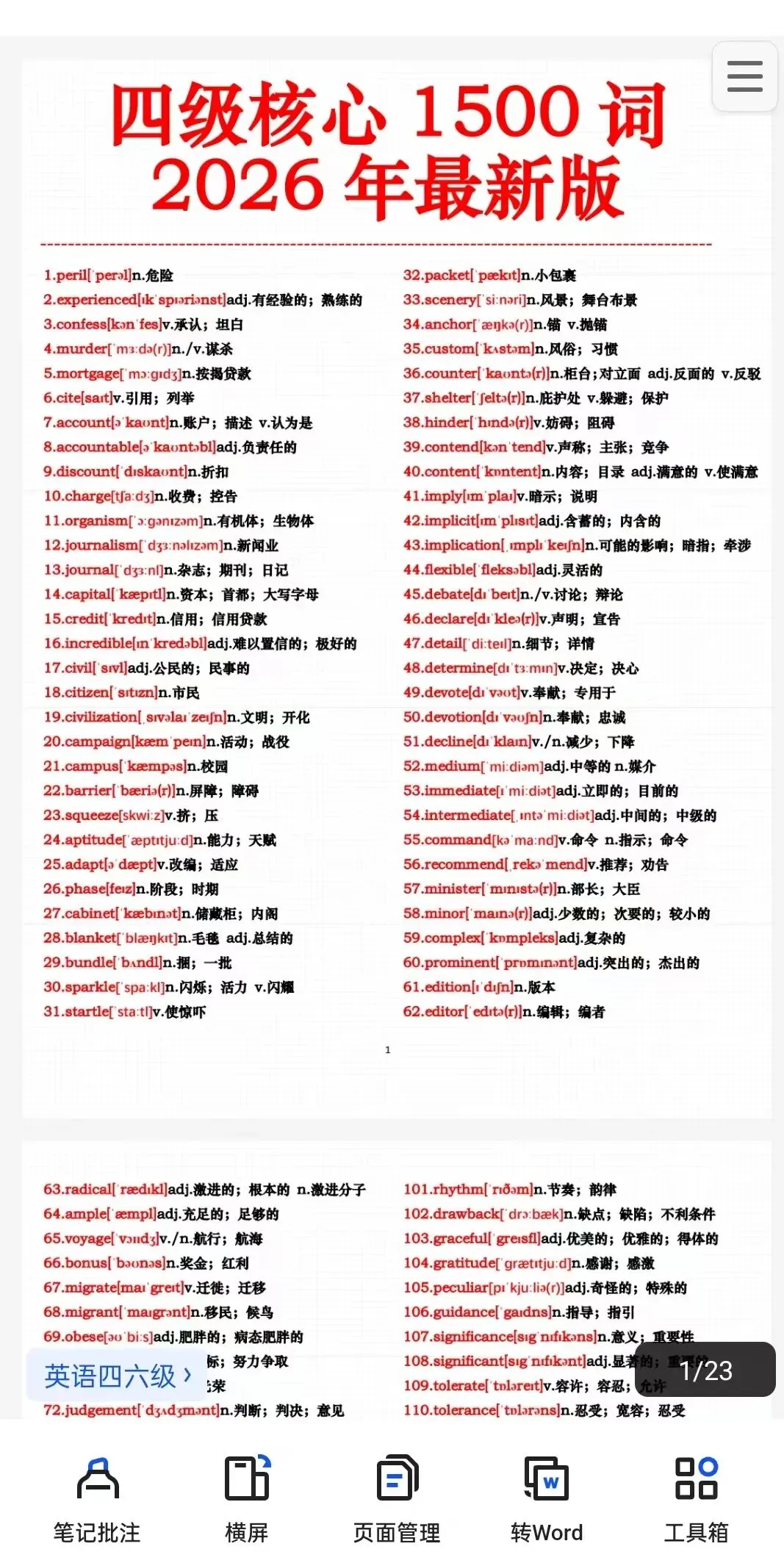 四级单词太多背不完?这份四级核心1500词,全是真题高频词,抓住重点背,效率直接拉满!