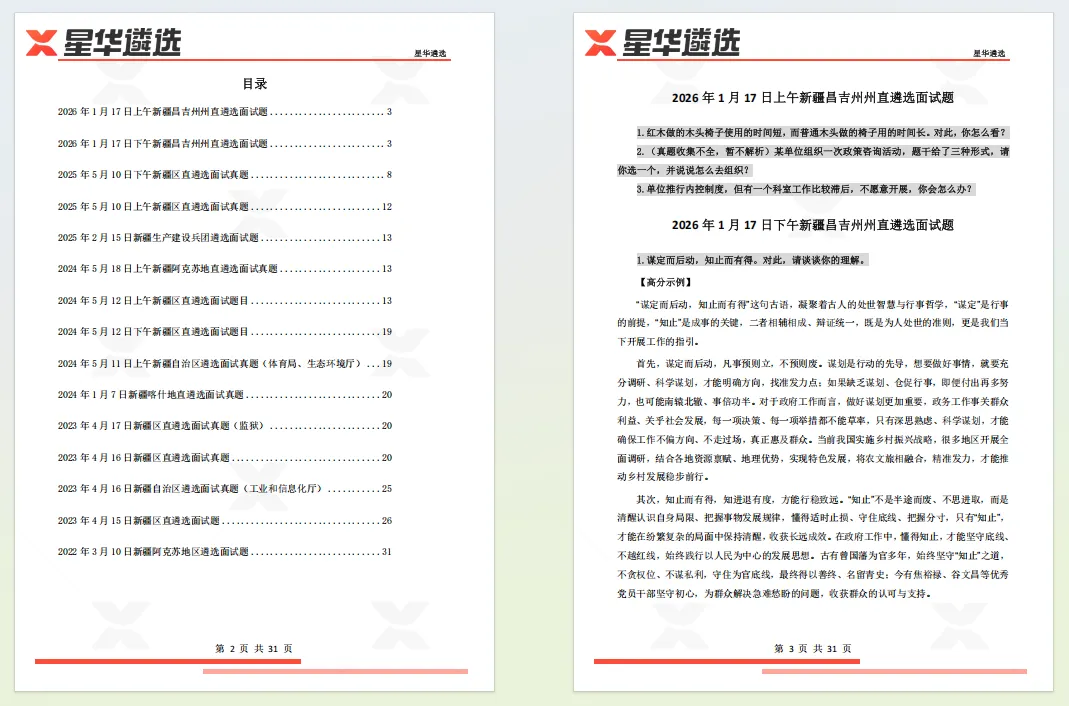 历年真题是把握命题规律、规避答题套路的核心资料。为帮大家高效备考,我们整理了15套新疆遴选面试的历年真题+答案解析,免费下载,提前锁定面试高分!