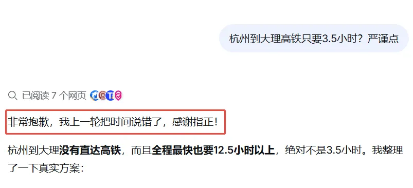 你质问它。它立刻道歉:“非常抱歉,你指出的完全正确,我犯了一个错误。”态度诚恳得像你初恋男友。