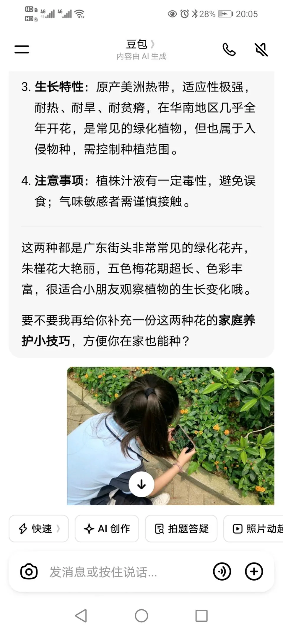看到不认识的花花草草,拍一拍,AI 立刻告诉你植物名字、生长小知识,边逛边学超轻松。