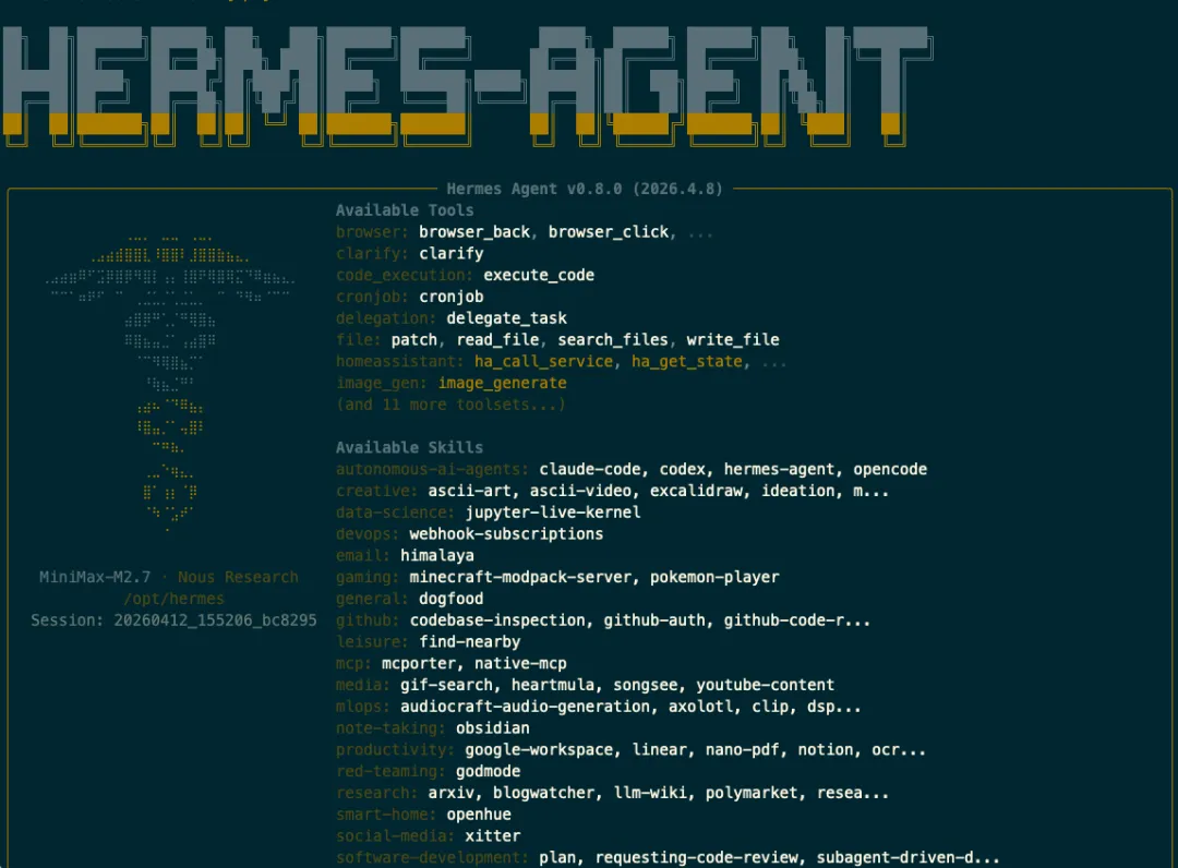 mkdir -p ~/.hermes第二步,初始化。docker run -it --rm \-v ~/.hermes:/opt/data \nousresearch/hermes-agent setup