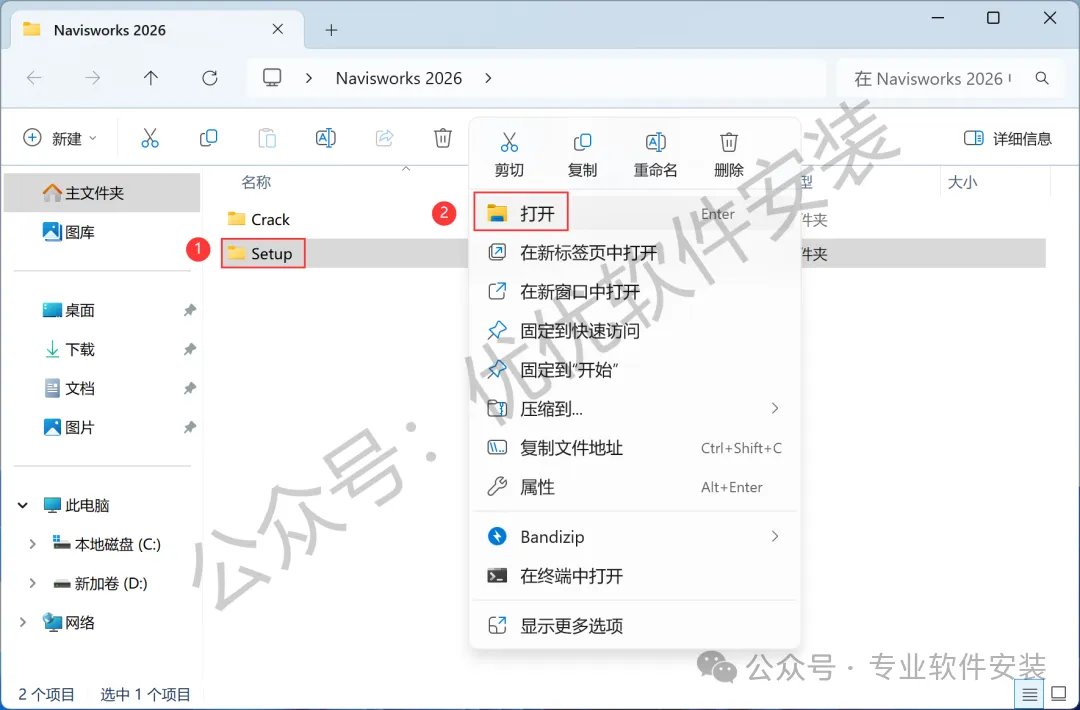 9、回到Navisworks 2026文件夹,找到【Crack】文件夹,右键【打开】它