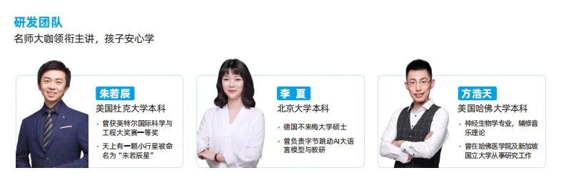 方浩天代表“学习科学底层”——神经生物学背景让他深刻理解“人是怎么学习的”,确保课程符合认知规律。