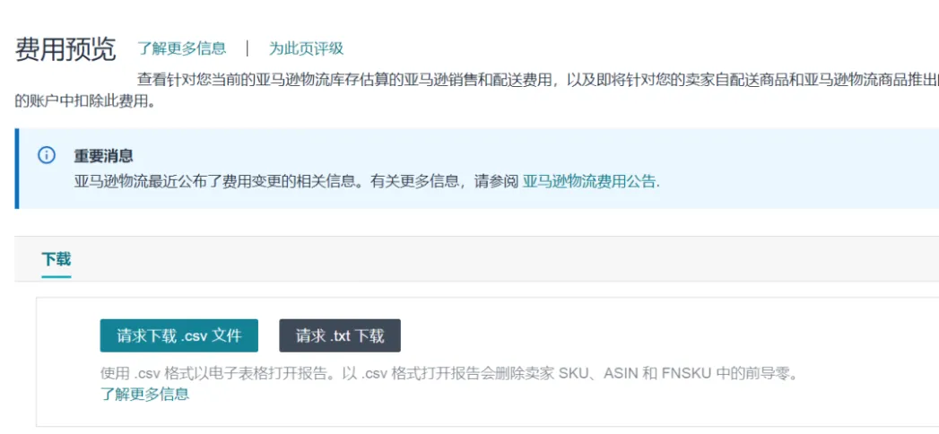 报告下载路径: 卖家平台 > 报告 > 配送 > 费用报告 > 费用预览