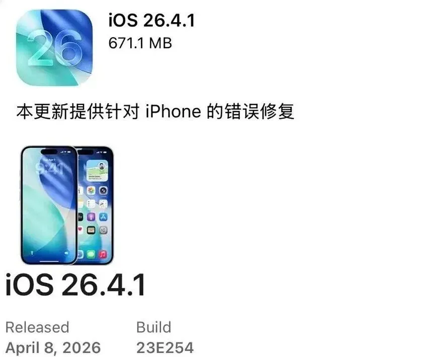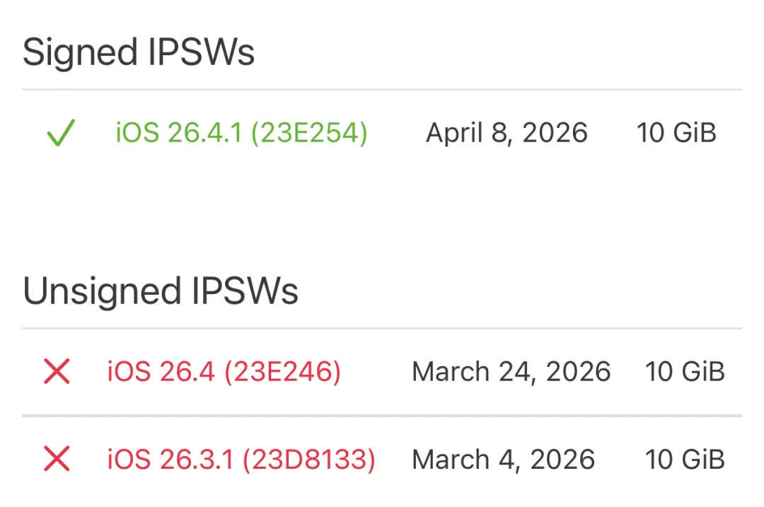 iOS 26.4.1 发布一周,苹果直接把 iOS 26.4 的降级通道给关了~