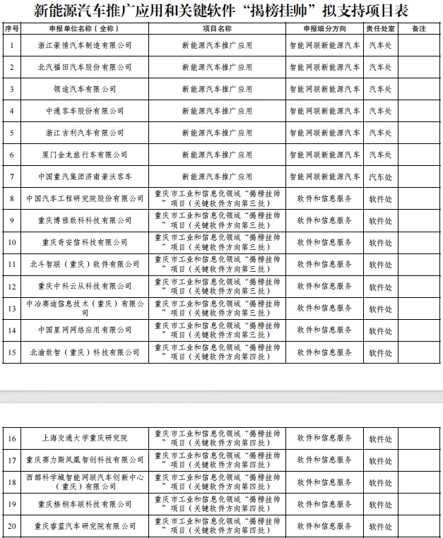 此次拟获得市级专项资金支持的20个项目,在新能源客车规模化应用和智能网联核心技术攻关等方面均形成一批突出成果。