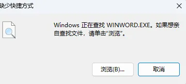 Word / Excel / PowerPoint 图标变成白纸 打开提示找不到 WINWORD.EXE 实际安装目录(如 C:\Program Files\Microsoft Office\root\Office16)已被删除