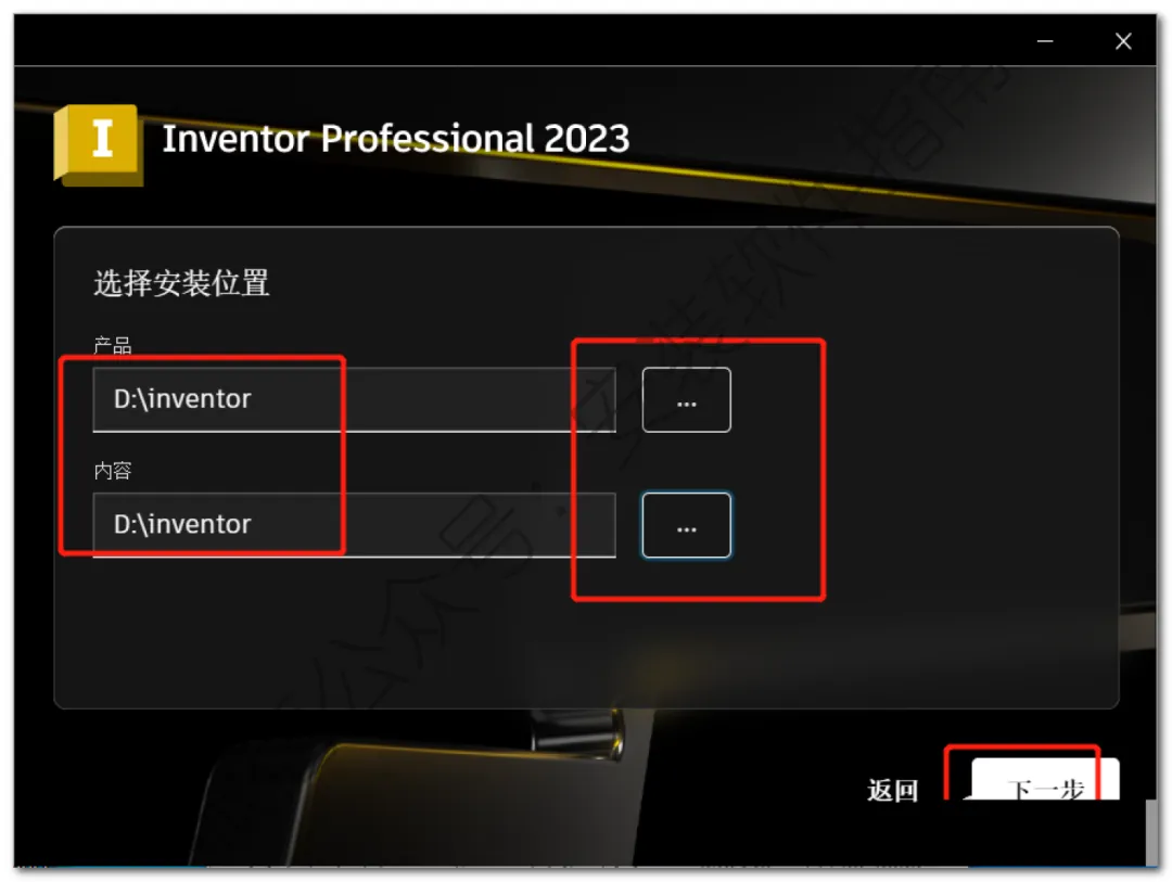 5、点击产品后【…】点击需要将软件安装的磁盘(如:D盘)在该文件夹下新建一个【Inventor】点击下一步