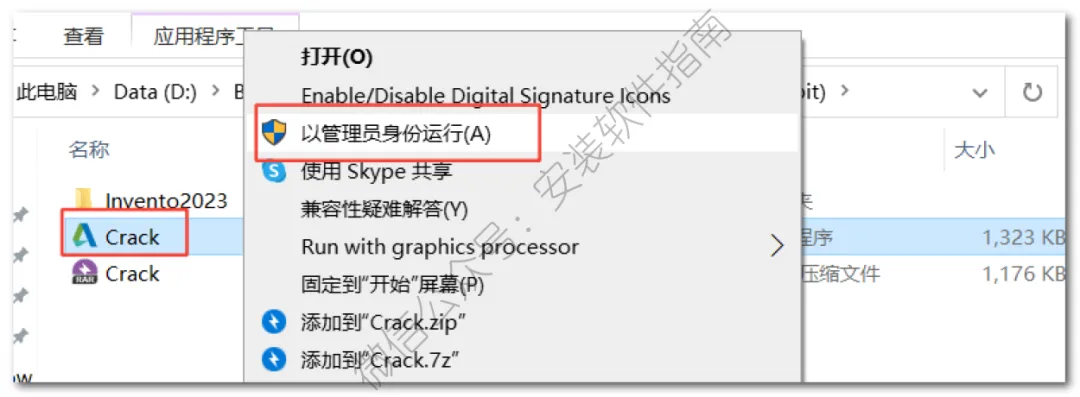 9.双击打开Crack文件夹,然后以管理员身份运行如下图程序