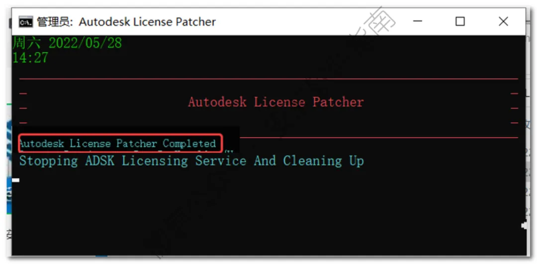 10.提示“AutoDesk License …… Completed”点击右上角【X】退出(程序也会自动退出)