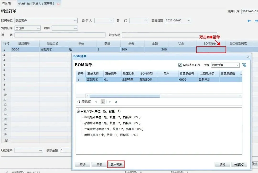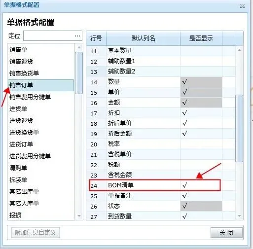 1、需要先在辅助功能——单据格式配置——销售订单——勾选上BOM清单,如下图: